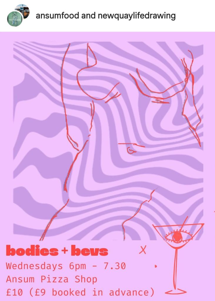 Bodies & Bevs – Wednesday Evenings – Life drawing class at Ansum Food, Newquay 6pm – 7.30pm